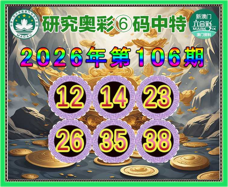 106期: 『研究奥彩』 ⑥码中特【12.14.23.26.35.38】开:22错