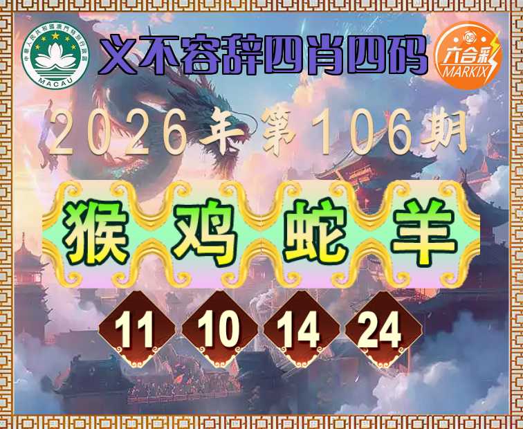 106期: 『义不容辞』 四肖四码【猴鸡蛇羊】【11.10.14.24】开:鸡22准