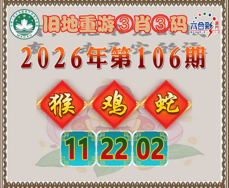 106期: 『旧地重游』 ③肖③码【猴鸡蛇】【11.22.02】开:鸡22准