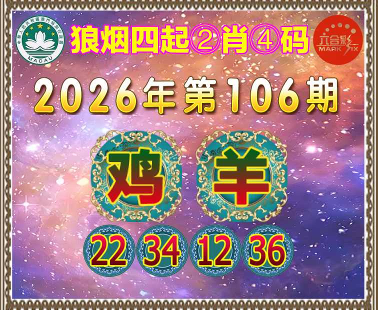 106期:〖狼烟四起〗 ②肖④码【鸡羊】【22.34.12.36】开:鸡22准